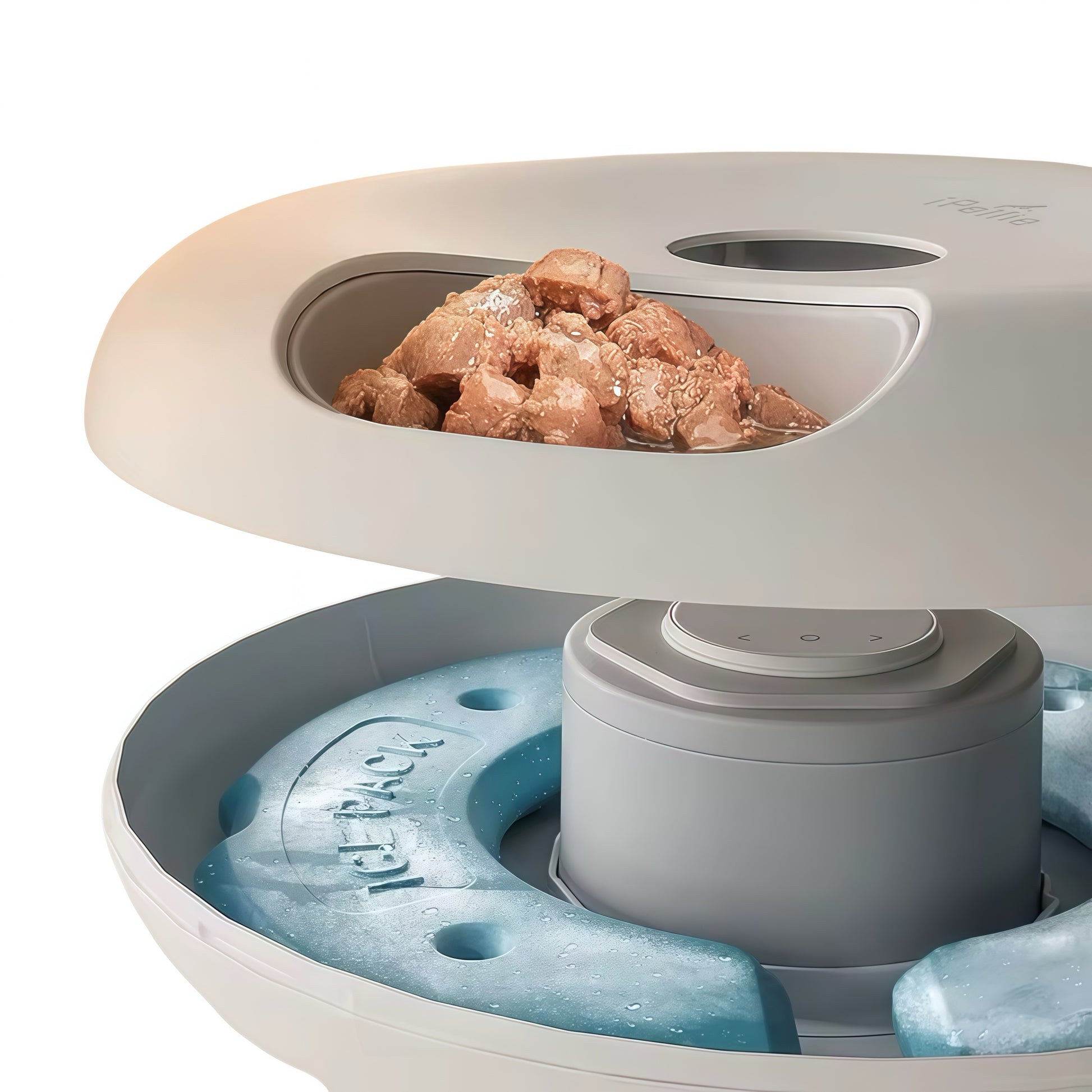 Unlike standard feeders, the IntelliFeed features Twin Ice Packs integrated into the base. These packs keep wet food chilled and fresh for hours, preventing spoilage and ensuring every meal is as delicious as the first.