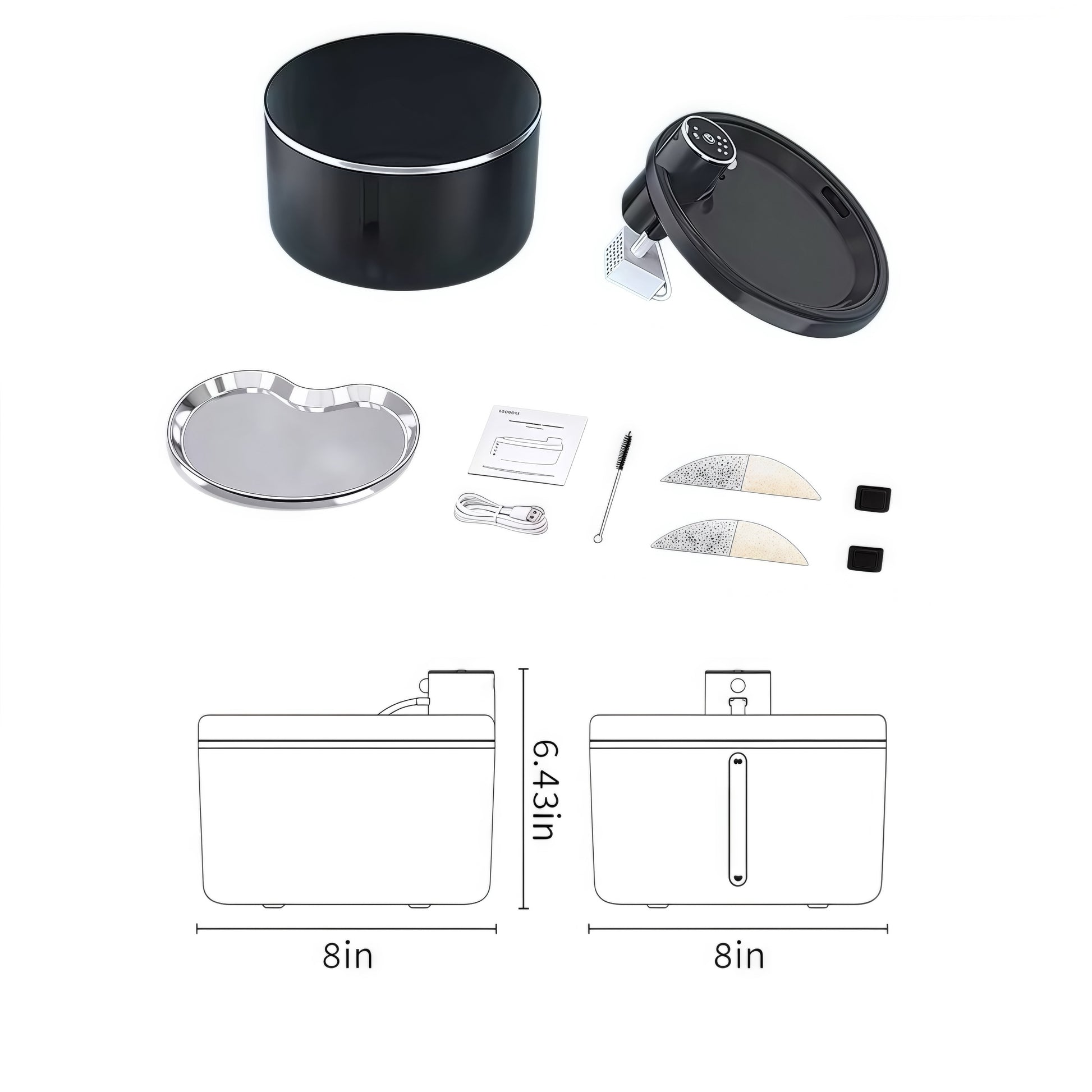 Elevate your pet’s health with the HaruKira IntelliFlow Pro in Midnight Black. Merging hygiene with sleek, cordless technology, this 3L powerhouse provides a "natural spring" experience for your cats and dogs. Crafted from high-quality 304 stainless steel, it is designed to keep water crisp, cold, and bacteria-free.